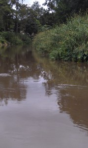 Today’s suburb as Ashgrove which is about 8km north-west of the Brisbane CBD. Following a highly successful stage one (which involved hamburgers and lime milkshakes) we started walking down hill hoping to find a creek with a walking track to follow. The creek having been located successfully we found a bridge over the fast flowing water, after watching leaves, twigs and branches float past the topic of paper boats inevitably arose and Clare suggested that I wouldn’t be able to make a boat out of newspaper and float it down the creek. How wrong she was.