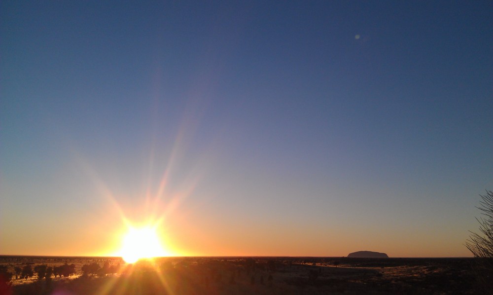 Uluru Sunrise 2 Published June 22, 2012 at 3264 × 1952 in Uluru Photos The Sun breaching the horizon at Uluru «Back