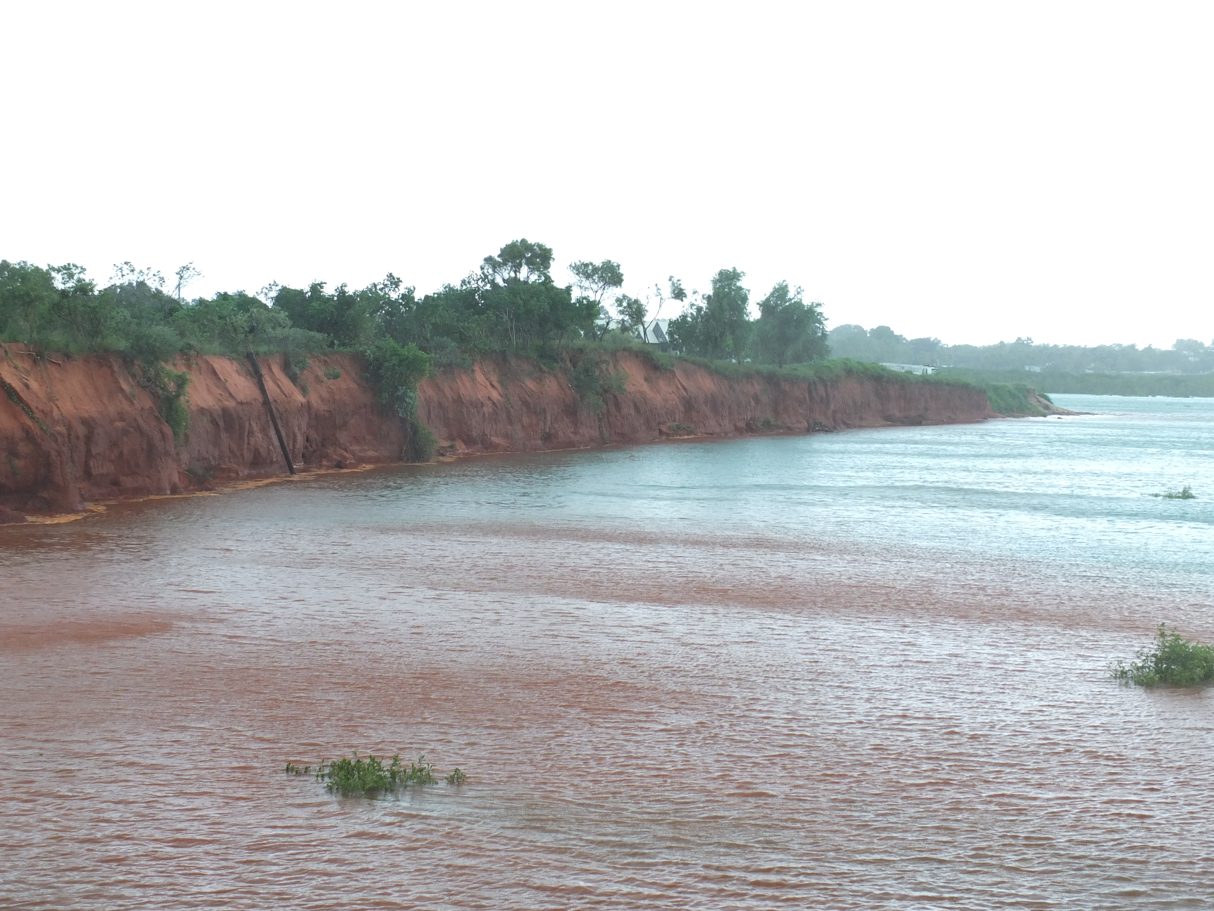 The rain wind and swell has been eating away the sand dune. Most of the colour in the water is from run off though.
